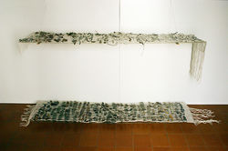 Les teles, constitueixen un conjunt de fils que ocupen i traspassen tota la matèria, que es troba coberta d’una textura filamentosa, que s’infiltra per qualsevol espai , reflectint la ciutat difusa expansiva, que avança des d’una perspectiva lineal, menjant-se tot el que té per davant. El joc de fils mostren aquests teixits urbans que s’han ramificat a tota velocitat, despullant l’espai natural de tot tipus d’impressió íntima.